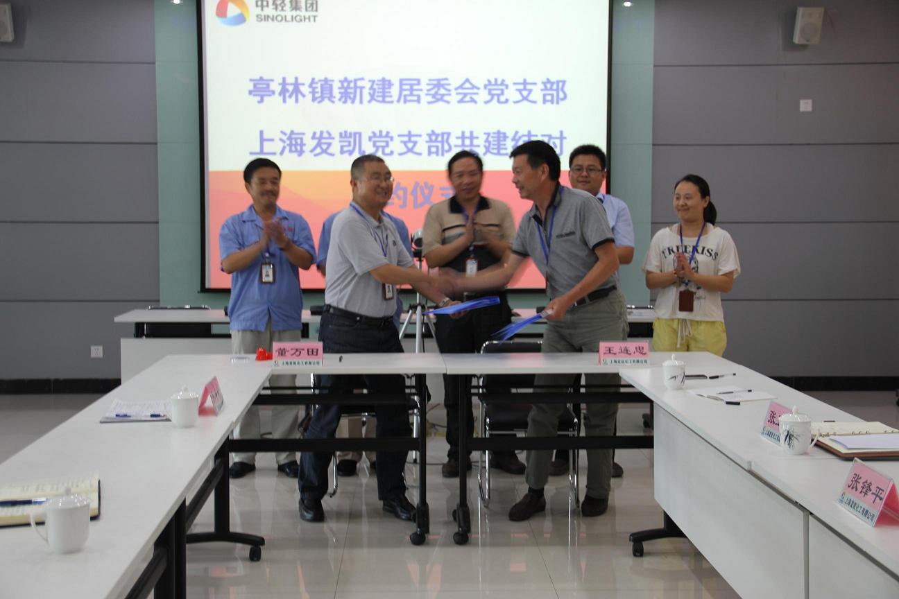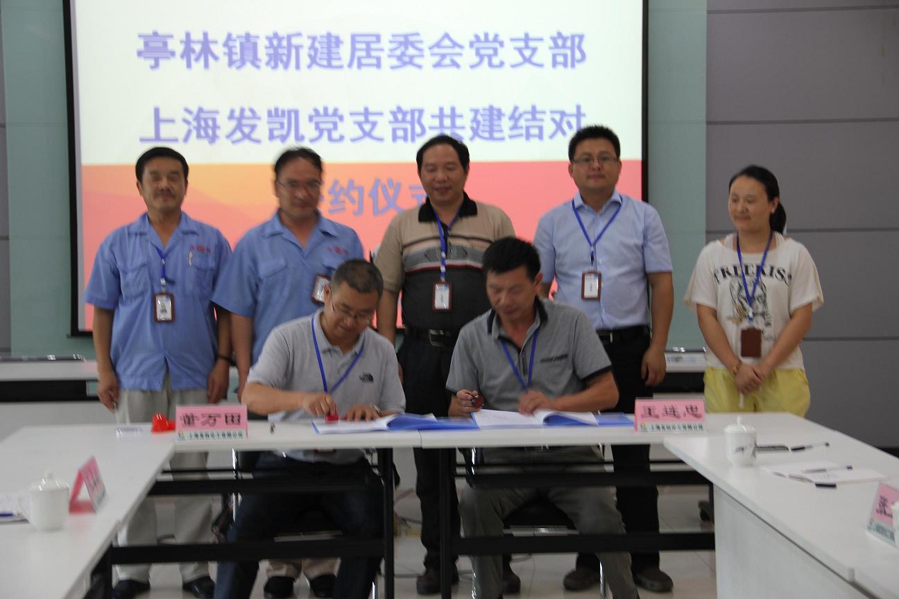 為了認(rèn)真貫徹落實(shí)科學(xué)發(fā)展觀,進(jìn)一步加強(qiáng)精神文明建設(shè),圍繞亭林鎮(zhèn)黨委政府工作目標(biāo)和任務(wù),促進(jìn)居委會(huì)的建設(shè)和發(fā)展。2014年8月7日上海發(fā)凱化工有限公司黨支部與亭林鎮(zhèn)新建居委會(huì)黨支部在上海發(fā)凱化工有限公司會(huì)議室舉行共建結(jié)對(duì)簽約儀式。