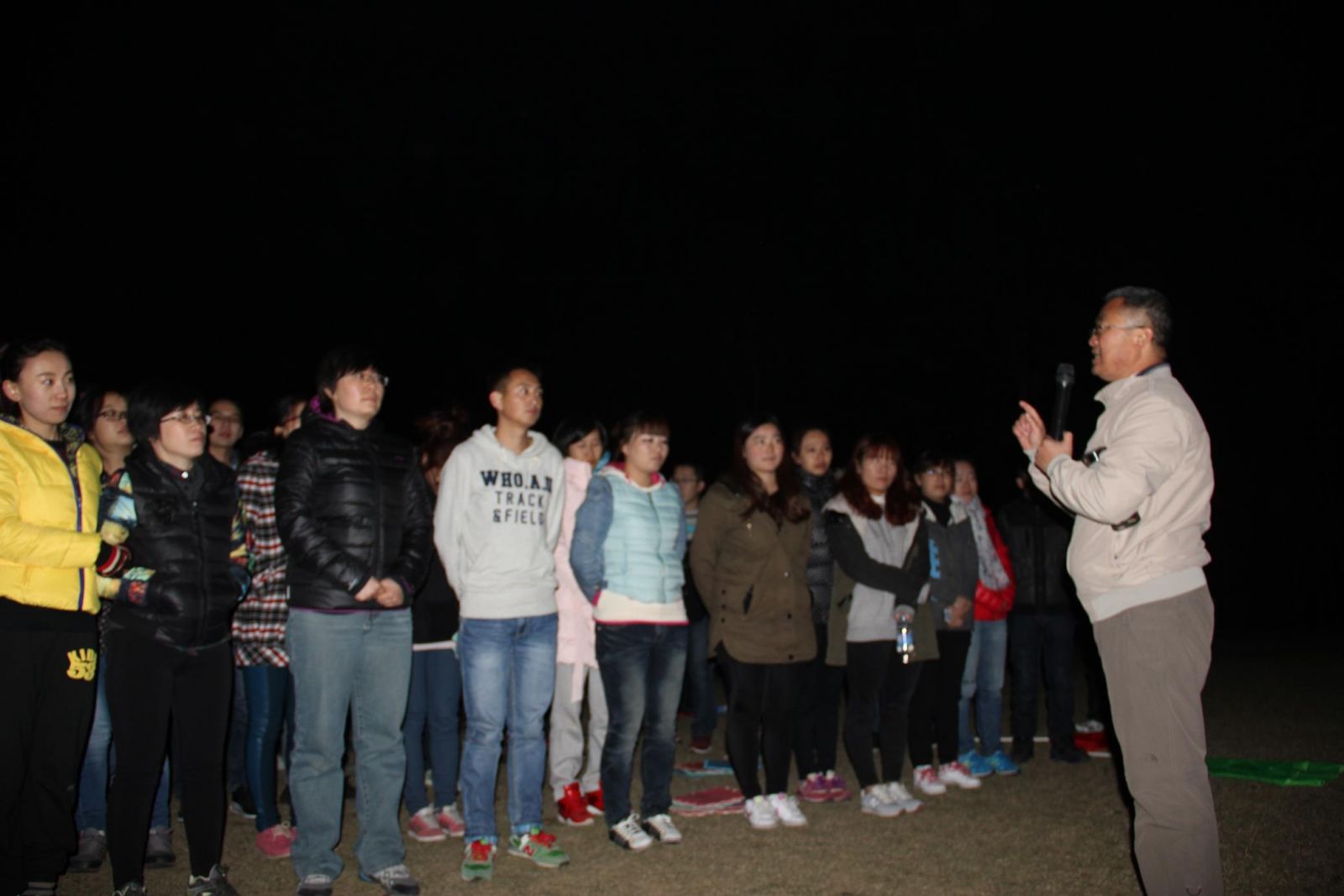 在教練的指揮下,七十多人分成了四個(gè)小團(tuán)隊(duì),各隊(duì)隊(duì)長(zhǎng)、政委、后勤部長(zhǎng)上任,起隊(duì)名,畫(huà)LOGO,喊口號(hào)。開(kāi)始了緊張而有秩序的拓展項(xiàng)目——群龍取水、生死電網(wǎng)、心速追擊,最后的挑戰(zhàn)五分鐘把整個(gè)訓(xùn)練推向了高潮。