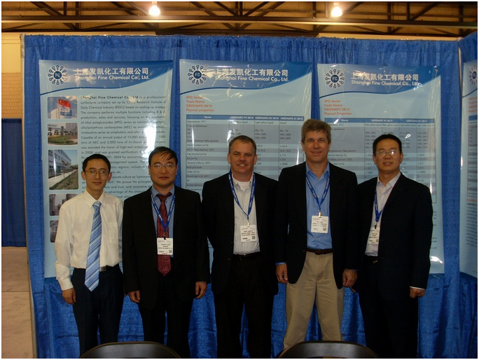 展會(huì)期間,上海發(fā)凱化工有限公司主要對(duì)企業(yè)概況和以APG為主的公司優(yōu)勢(shì)產(chǎn)品進(jìn)行展示,參展人員與約五十幾位參觀者進(jìn)行了有效的溝通,重點(diǎn)介紹了上海發(fā)凱化工“綠色、安全、環(huán)保”的產(chǎn)品特色及優(yōu)勢(shì)等。本次展會(huì)期間,上海發(fā)凱化工分別與DOW、JARCHEM兩家美國(guó)客戶進(jìn)行了深入的交流,重點(diǎn)探討了美國(guó)市場(chǎng)的開發(fā)和產(chǎn)品質(zhì)量保障等問題。兩家公司均對(duì)與上海發(fā)凱化工的合作表示滿意,一致認(rèn)為應(yīng)該在產(chǎn)品多樣化和市場(chǎng)開發(fā)上同上海發(fā)凱化工保持密切合作,希望與上海發(fā)凱化工發(fā)展長(zhǎng)期穩(wěn)定的合作關(guān)系。